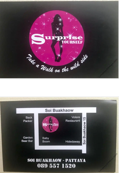xyzzy Posted December 2, 2018 Share Posted December 2, 2018 https://www.google.com/maps/place/Surprise+Yourself+Bar/@12.9276732,100.8815979,17z/data=!3m1!4b1!4m5!3m4!1s0x3102960c1b618d1d:0x6715f9ccc91f0abb!8m2!3d12.9276732!4d100.8837866 Quote Link to comment Share on other sites More sharing options...